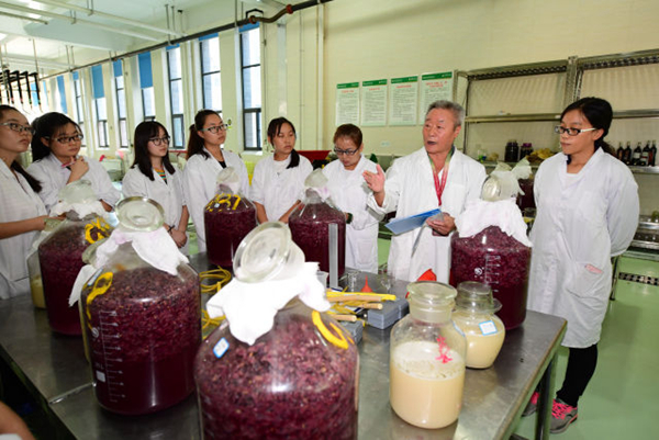 9月7日,李华(右二)在西北农林科技大学葡萄酒学院向学生讲解葡萄酒酿造的注意事项。